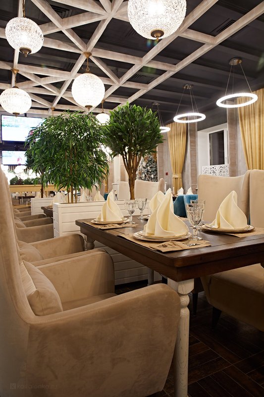 Был корпоратив. Понравилось оформление зала, кухня, проведение мероприятия. Из блюд могу рекомендовать морепродукты. Из деталей интерьера запомнились кресла, на которых сидели.