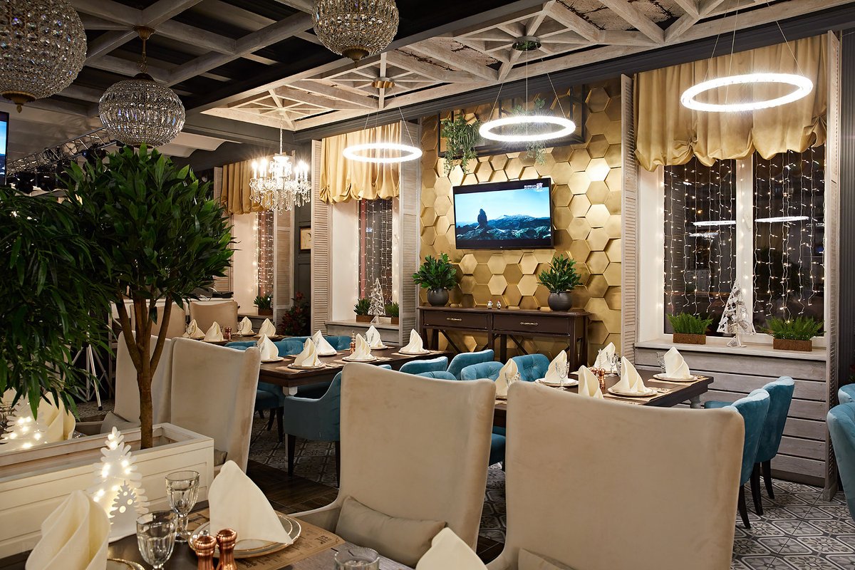 Бронировали новогодний вечер в ресторане. Мне очень понравился персонал, все были отзывчивые. Выбрали ресторан из-за меню, цены и его месторасположения. Из меню понравились шашлык и мясо.