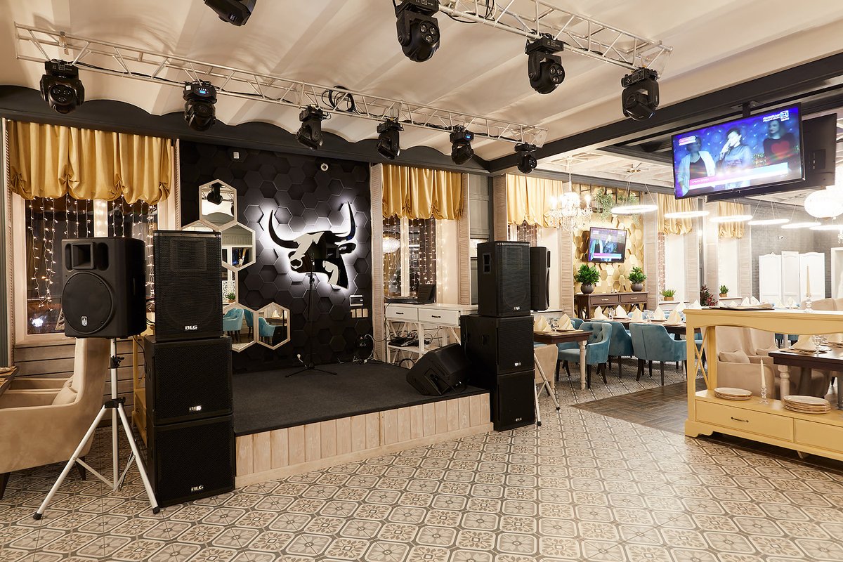 Мне понравилось меню и живая музыка. Я заказывал салат с мясом и листьями. Персонал работает нормально. В заведении есть танцпол, что очень важно для меня.